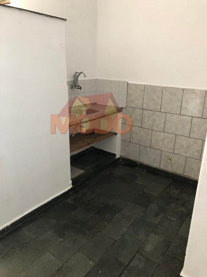 Alugo CASA térrea, com um dormitório, sala, cozinha, banheiro, área de serviço, garagem coberta, e um pequeno quintal.