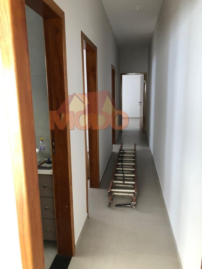 são 03 dormitórios sendo uma suíte, sala dois ambientes, cozinha com armário de pia, banheiro com vidro temperado blindex e gabinete, acabamento em porcelenato, área de serviço coberta, garagem, corredor e quintal com piso frio, gramado e garagem para até 02 veículos, portão automatizado.
